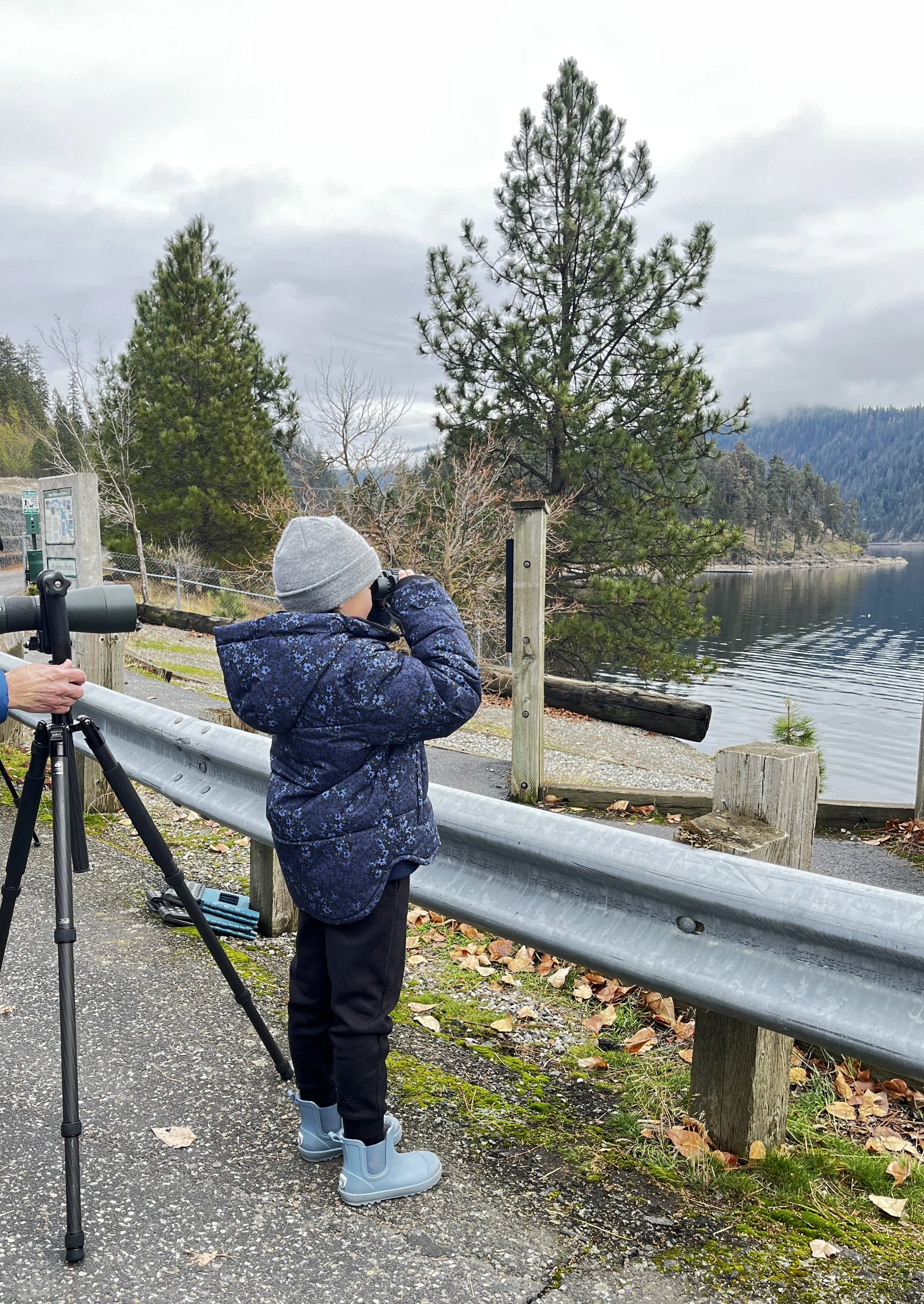 On December 12, 2024, a spirited team of Coeur d’Alene Audubon volunteers welcomed four enthusiastic classes of 3rd graders from Hayden Canyon Elementary School to Higgens Point on Lake Coeur d’Alene. It was a calm December day, perfect for observing the seasonal gathering of Bald Eagles.
